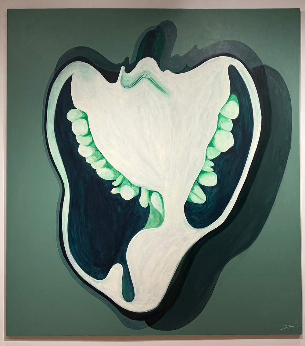 種を育む白い台座と、それを包み込み守る母体のようなピーマンの果実。