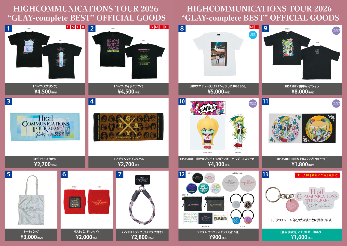 3月20日(金・祝)栃木・宇都宮市文化会館よりスタートする「HIGHCOMMUNICATIONS TOUR 2026 “GLAY-complete BEST”」。各ライブ会場でのオフィシャルグッズ販売について、詳細をお知らせいたします。